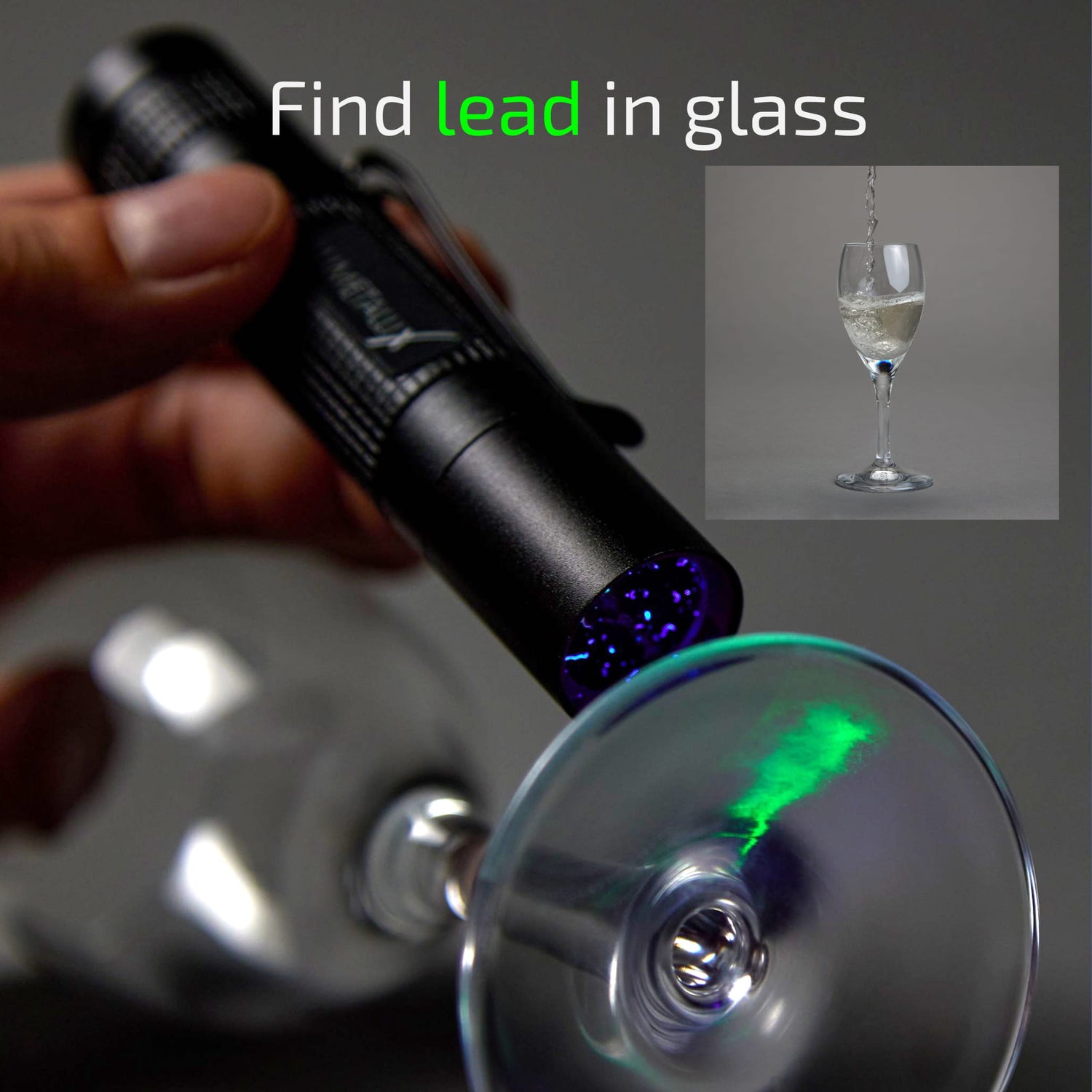 1. Shine the Leadlight:Â Use the included UV LeadLight to shine on the surface you want to test.