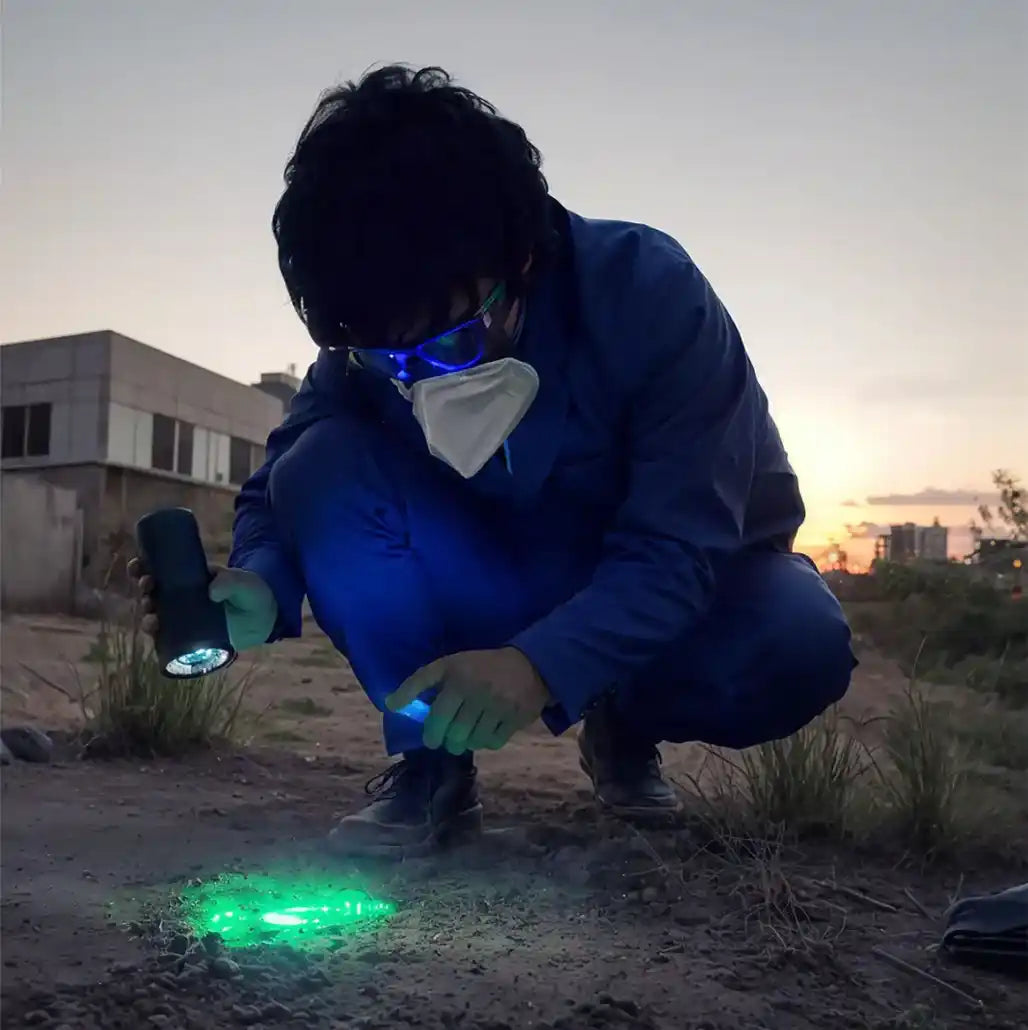 3. Watch for the Green Glow:Â If lead is present, the surface will immediately glow bright greenâvisible to the naked eye.